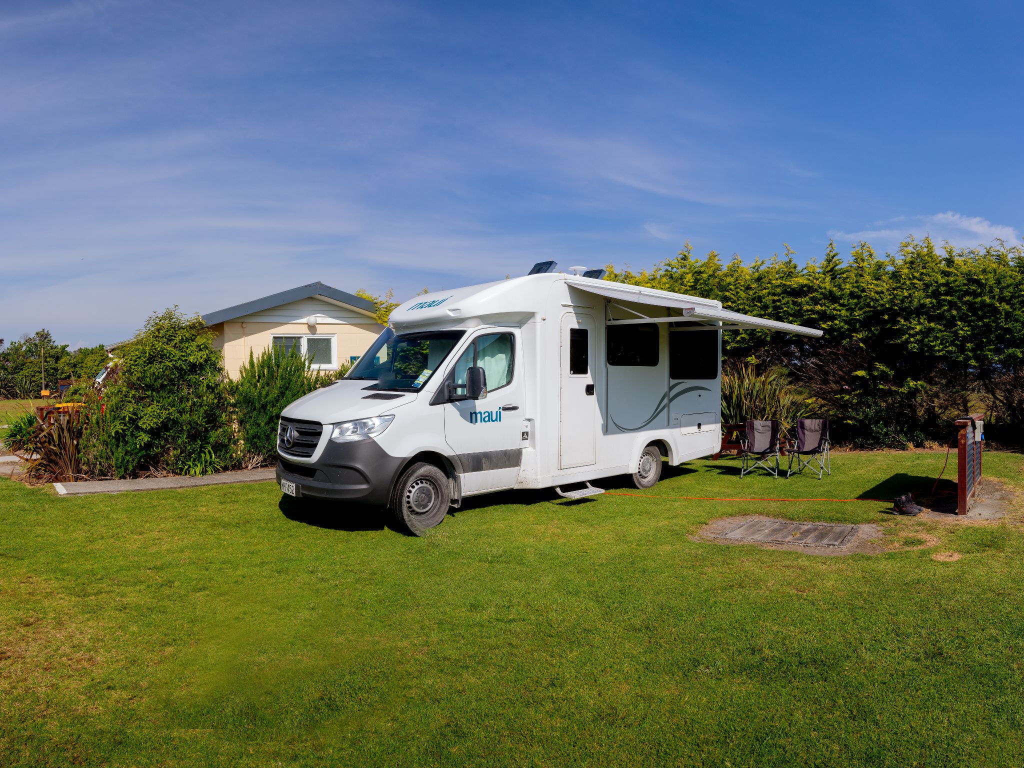 Our spacious powered sites are ideal for motorhomes, caravans, buses, cars, and tents. Most sites are 6 x 8 metres, and many include power and water. Guests enjoy free unlimited Wi-Fi and full use of communal facilities, including bathrooms, kitchen, BBQ area, guest laundry, TV lounge, and children’s activities. Pets are welcome by pre-approval.